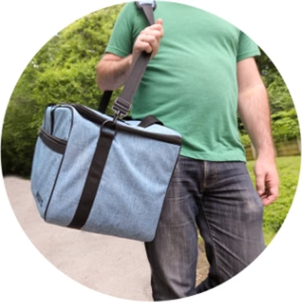 Hide the backpack straps and turn your board game bag sideways. Maybe you have a lighter load or longer boxed games. It is simple to carry by your side and has a strong padded handle for comfort.