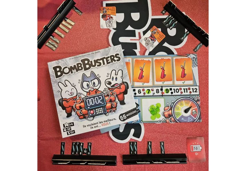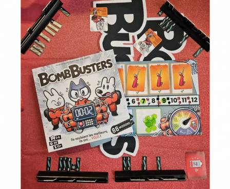 In Bomb Busters, there is a set of 48 normal wire cards numbered 1-12 (4 of each value) with some yellow and red wire cards. These are dealt out. Each mission is different, but your goal is always the same: go through all 12 numbers without blowing up!