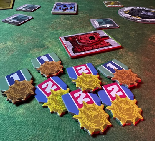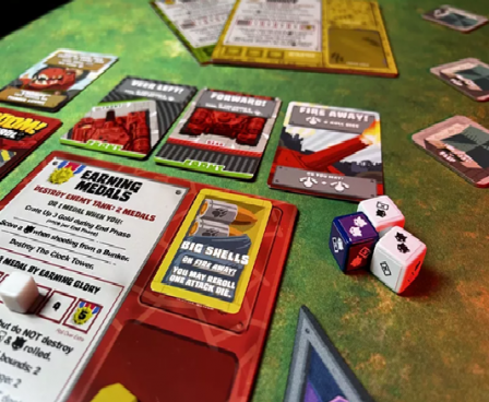 Featuring an intuitive and innovative movement system, programmed command cards, asymmetric tank captain abilities, and videogame-like logic, this is just a blast to play. And with the toy-etic cardboard tanks, you will find yourself making tank noises as they rumble across the arena and turn their turrets with a "TINK, TINK, TINK," before firing.