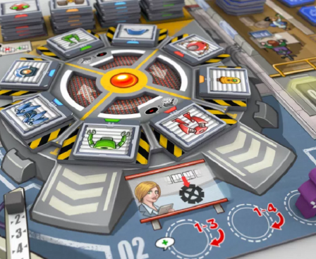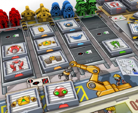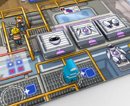 Your goal in Bot Factory is to gather projects and parts, then assemble bots, thereby fulfilling demand goals and improving the value of the bot you are making. Sandra, the factory manager from Kanban, is present here, moving to different departments and using the players' spaces. The game uses the same worker-placement mechanism from Kanban in which turn order is established by the workers' positions on the board.