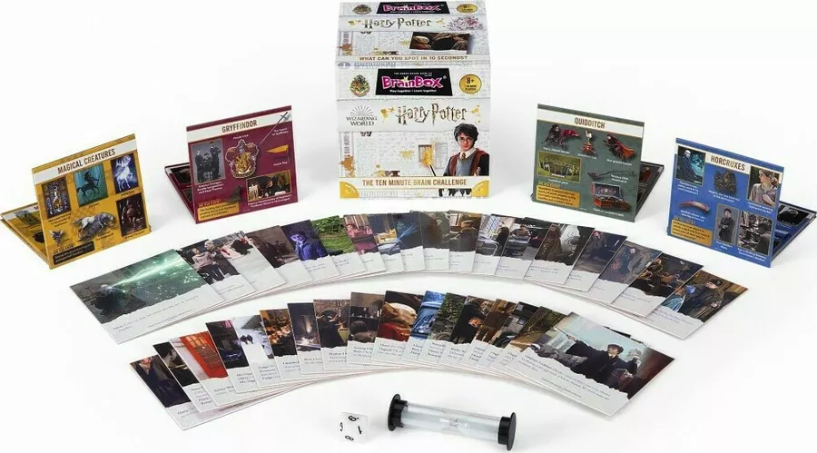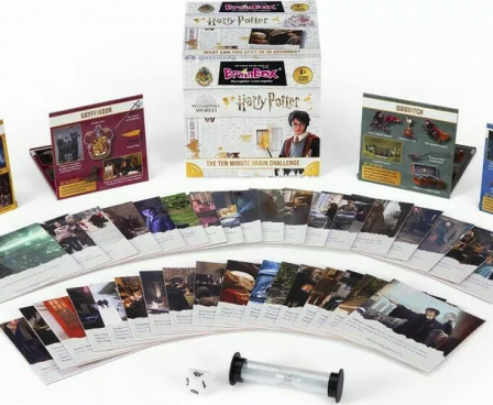 Brainbox Harry Potter board game is a great brain teaser and fun for one or even more players! Make a note of as much information as possible in 10 seconds from the pictures, diagrams, scenes on the drawn card, then roll the dice and answer the question by number correctly. But don’t waste your time because the eyes on the hourglass run down quickly! You can check the answers on the card. If you are a good observer, most cards will land on you!