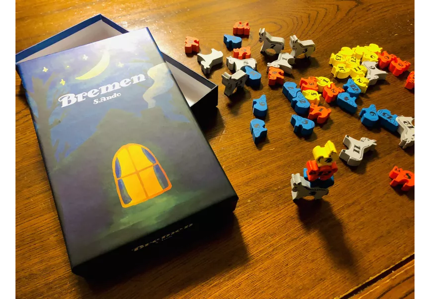 In (The Torite), later re-published as Bremen, the players participate in a cooperative trick-taking game. The game uses "must-follow practice cards", a type of 52 card deck where the suit of each card is visible on the back.