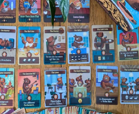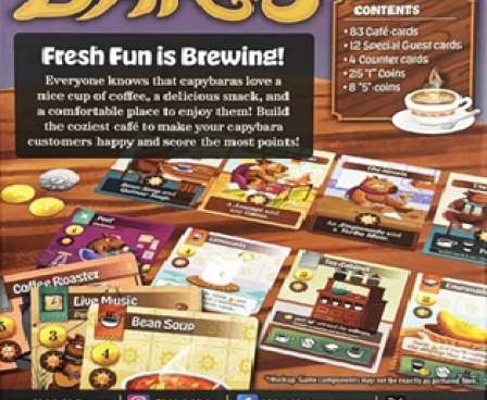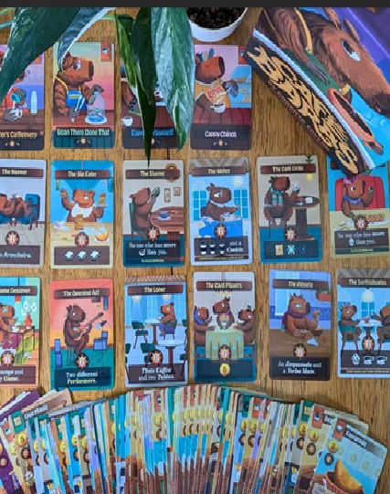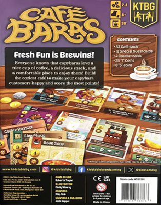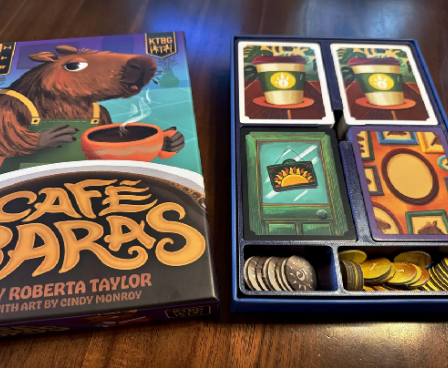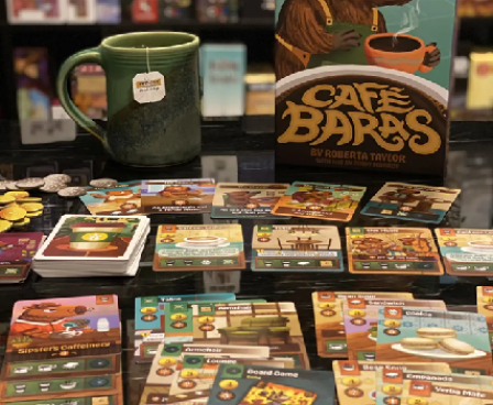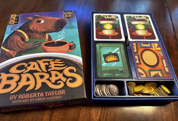 Café Baras is a card drafting, tableau-building game brought to you by the creative team behind the critter classics Creature Comforts and Maple Valley.