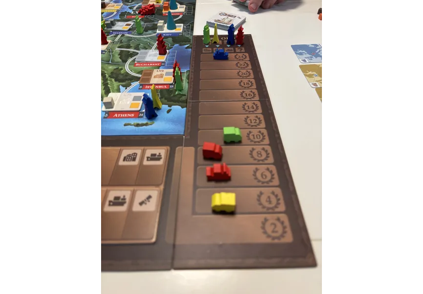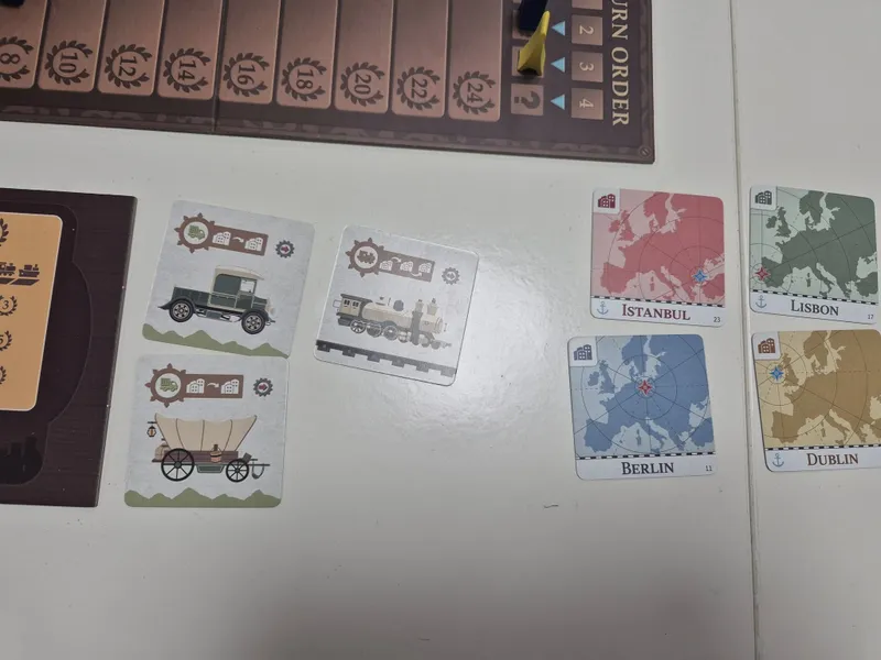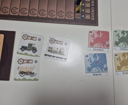 There is only one action in this game, and that is transporting cargo. Players must navigate a changing landscape, weaving between cities and using various transport modes to score points. To dominate, players must plan their network of trading posts meticulously and keep a sharp eye on long-term rewards.