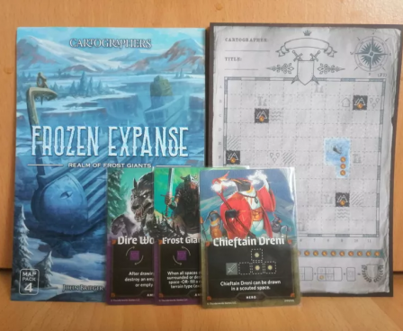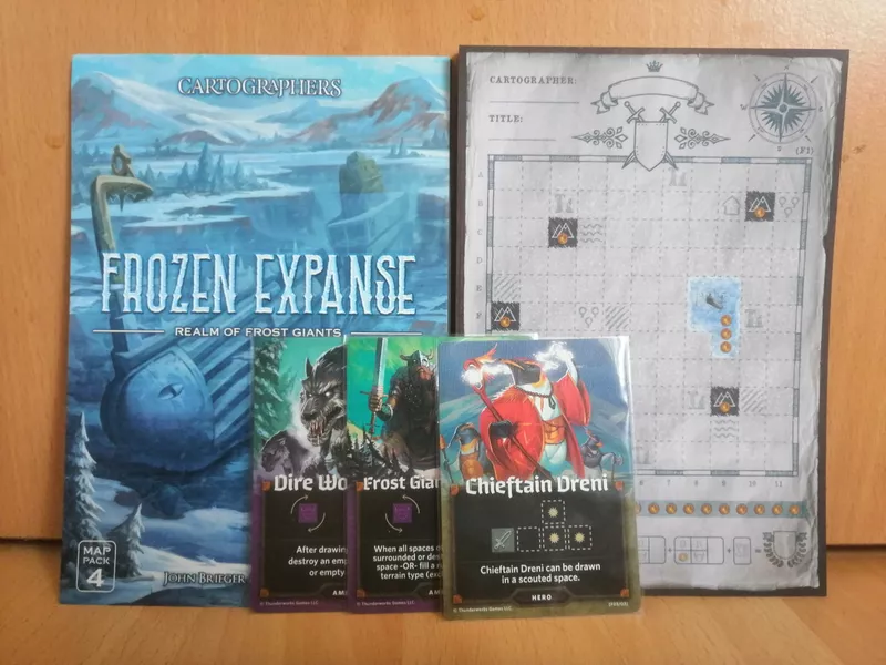Cartographers: Map Pack 4, Frozen Expanse can be played with either Cartographers: A Roll Player Tale or Cartographers Heroes.