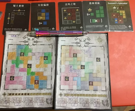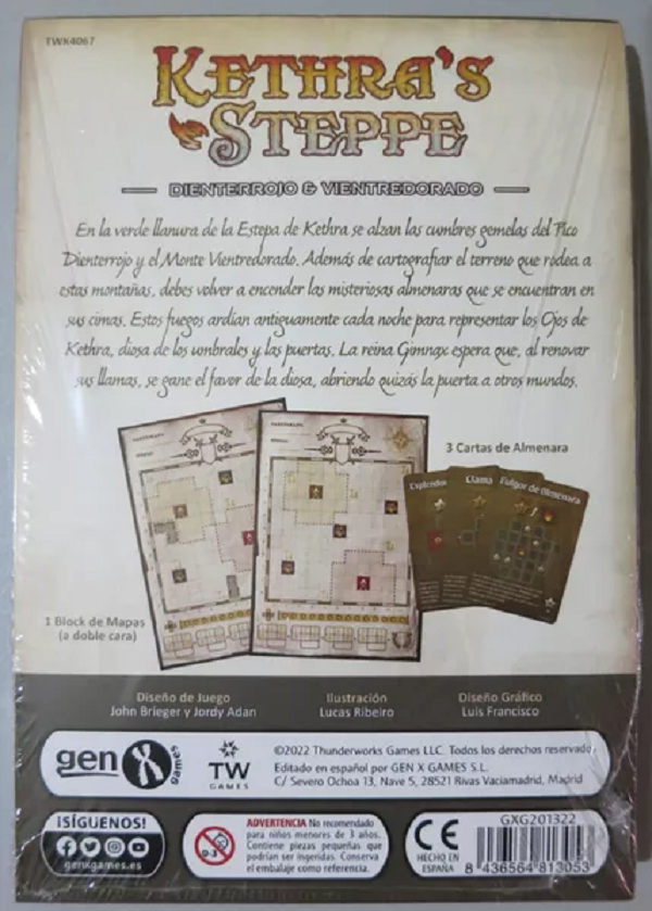 It includes 75 double-sided new map sheets featuring twin mountain spires and their beacon ranges and 3 new scoring cards, specifically for use with this map pack. Players light beacons by surrounding them and score points based on a 5th type of scoring card introduced in this map pack.