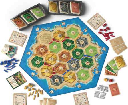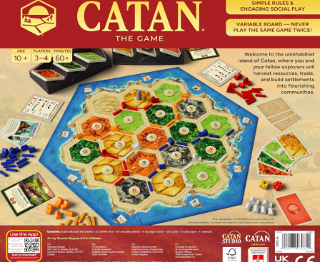 - EXPLORE THE ISLAND OF CATAN: Settle the uninhabited island of Catan by gathering resources, building infrastructure, and nurturing trade relationships.
