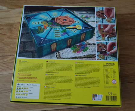 This push-your-luck memory game uses a unique box and board construction to provide hundreds of combinations for the "locked" areas of the board.