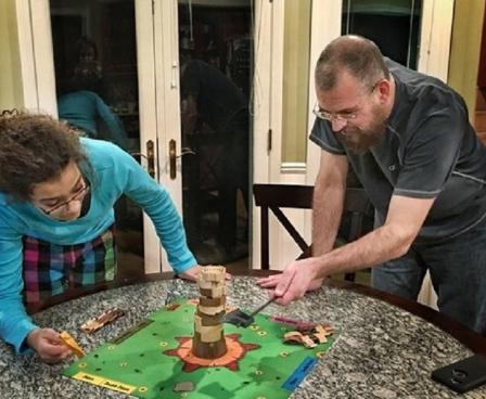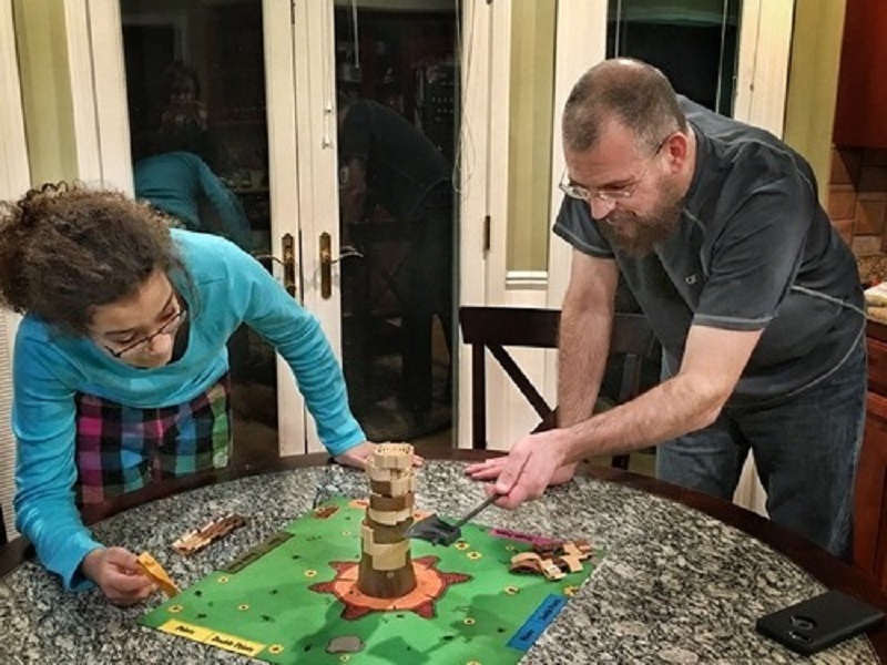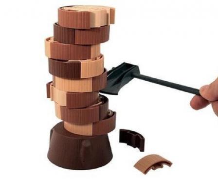 This game takes more skill and strategy than Bash because the goal is to leave behind the inner part of the tree. Toc Toc Woodman is a great dexterity/action game that will also draw some comparisons to Jenga. It is, however, quite dissimilar aside from the fact you are working within the realm of a "tower" of parts.