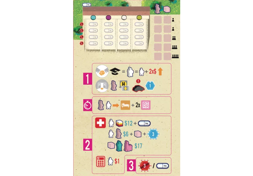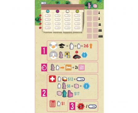 The 69th Pink Extension contains 5 new big modules and an additional deck of randomizer cards. We also added Blue Pills and Pink Pills tokens for the fans who don’t like playing with the real pills released in the Clinic 6th Extension. 17 New Solitaire Goals end this new set of rules. Forget everything you’ve learned about Clinic through all the expansions. With this expansion, your goal is not to treat patients, nor even sustain them; rather, you strive merely to satisfy your most primal instincts.