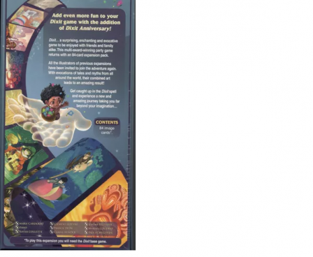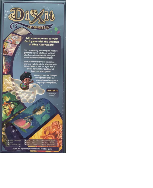 All the illustrators of previous expansions have been invited to join the adventure again. With evocations of tales and myths from all around the world, their combined art leads to an amazing result! Get caught up in the Dixit spell and experience a new and amazing journey taking you far beyond your imagination…