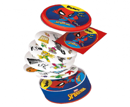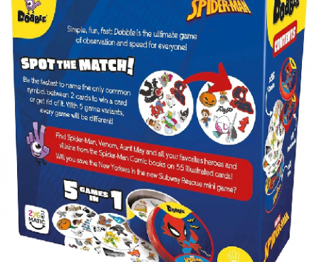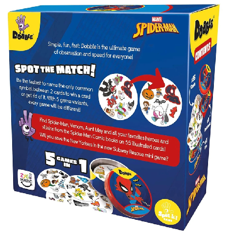 Dobble is a game of visual recognition – players must spot matching symbols shown on the cards. Players take turns to uncover cards, and whoever spots the matching pair of symbols claims the first card – then they begin uncovering more cards until the card deck is exhausted – whoever has claimed the most cards wins!