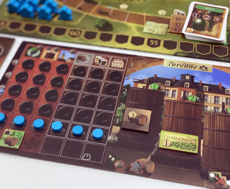 To make all this happen will require a chain of actions that starts in your vineyard. You will need to look for continuous improvement, constantly react to your opponents, and optimize your choices to build the most prestigious Champagne Maison. In game terms, on a turn you move up a disc on the winery game board and perform an action, with the actions become