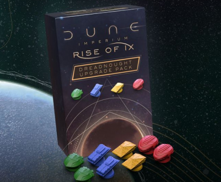 Enhance your Dune: Imperium experience with the Rise of Ix Dreadnought Upgrade Pack! This cosmetic expansion upgrades the components of the Rise of Ix expansion for a more immersive experience. The contents include eight Dreadnought miniatures (2 in each player-color) which fit in the Deluxe Upgrade Pack.