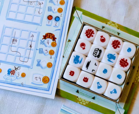 In the second and third rounds, you replace one of the dice with a labyrinth die that can be passed through only in certain directions, and in