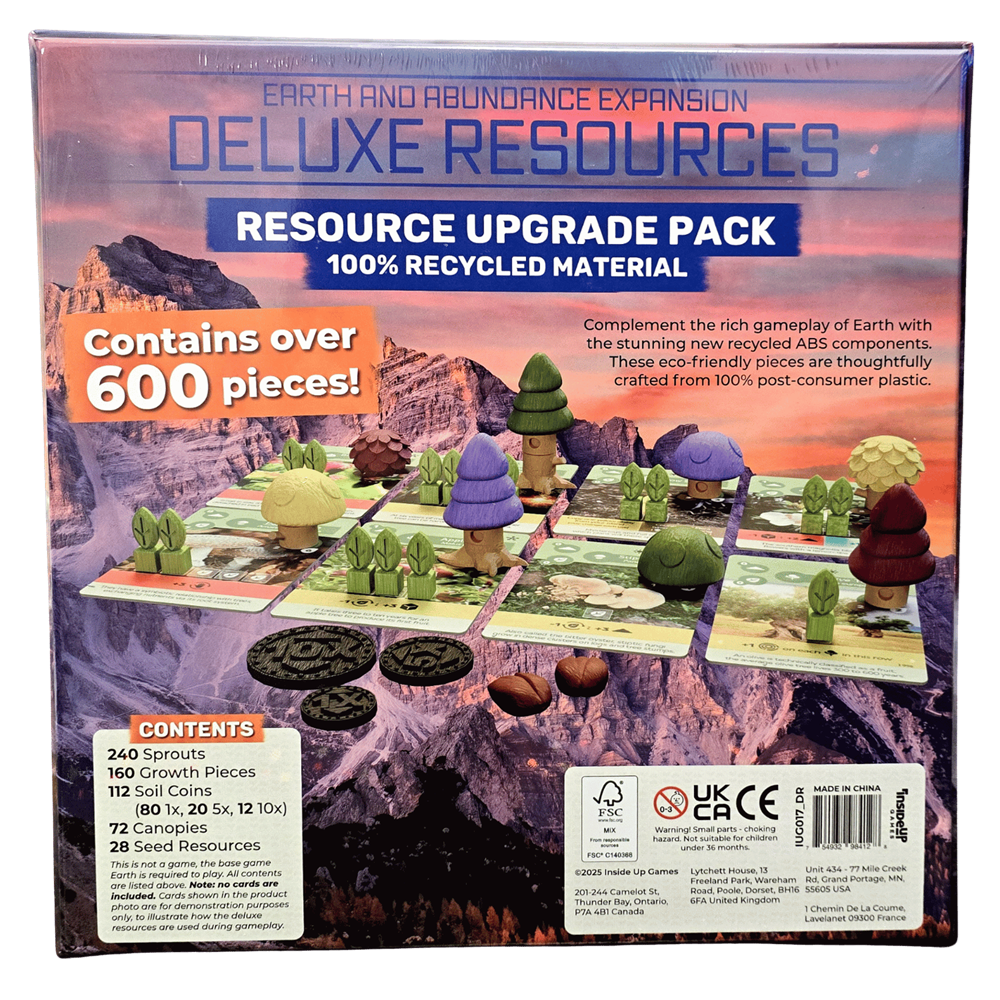 Complement the rich gameplay of Earth with stunning new recycled plastic components. These deluxe upgrades give new life to recycled plastic materials and upgrade the components from the base game with unique sculpts and tighter connections between growth pieces.