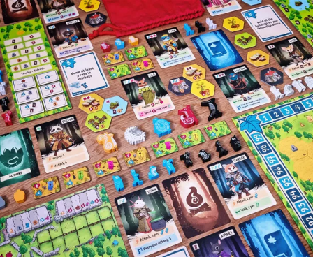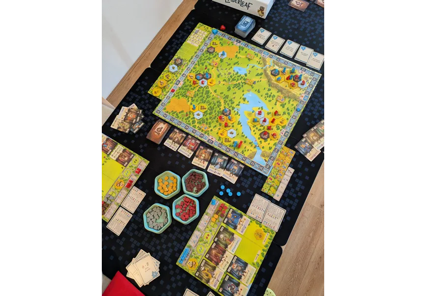 Emberleaf is a competitive card-dancing and tile-placement board game.