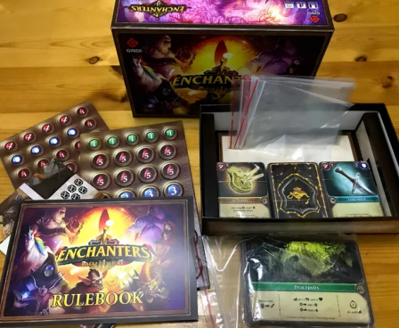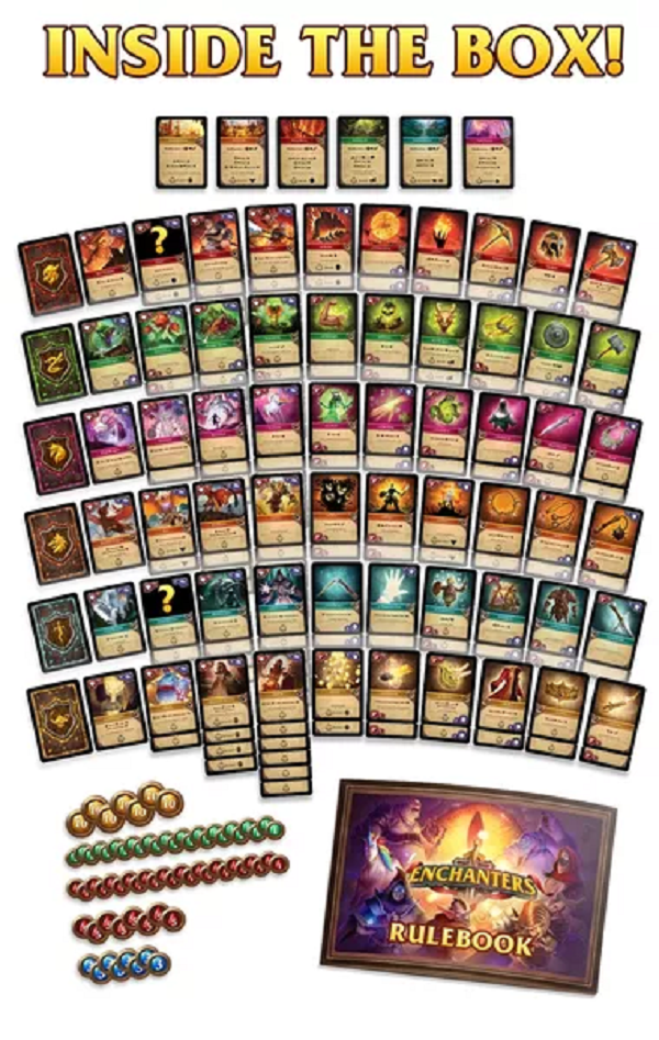 In the fantasy card-drafting game Enchanters, you create an artifact and upgrade it each turn. Every card you take retains some of its power. As you grow stronger, you can take on more powerful monsters and, if you plan well, even defeat a dragon.