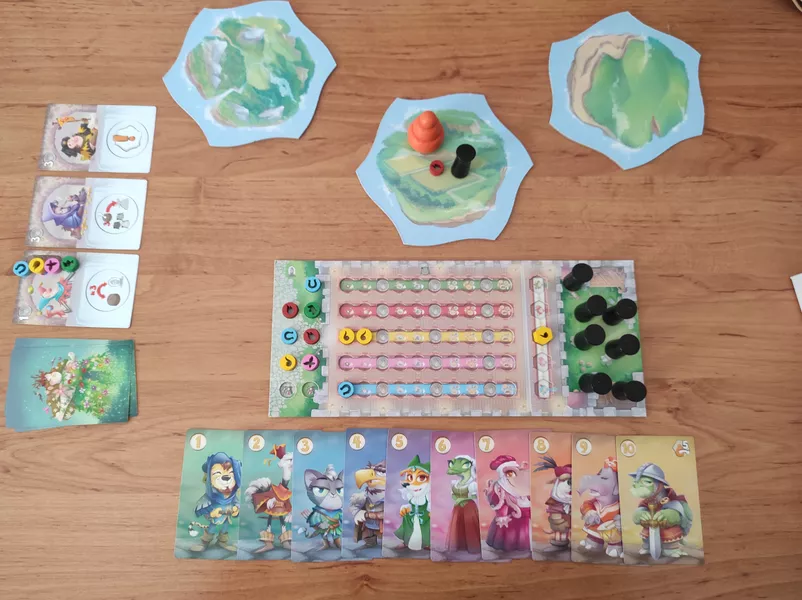 In Eriantys, a game full of strategy, tactics, and twists and turns, you run one of these four great schools and compete with other wizards to increase your fame! Carefully plan your moves and try to control your opponents' moves. On your turn, play a card, place three students, and advance mother nature a certain number of steps across the islands. The island on which mother nature lands is evaluated, and whoever controls it can erect one of their own towers, possibly taking control from an opponent. Additionally, adjacent islands controlled by the same player can merge with that one.