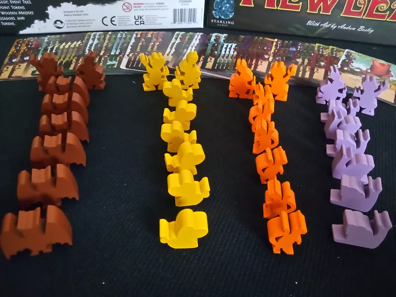 Everdell’s bustling city Newleaf has just opened its first train station, and many new critters and big ideas are rolling in. Newleaf introduces brand new critters, constructions, and exciting events to draw Visitor cards to your blossoming city! It also features the Train Station Board, resource-delivering Train Cars, travel-worthy Tickets, and Reservation Tokens!