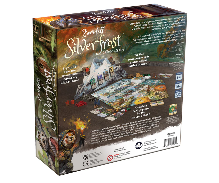 Beyond the snow-capped Spirecrest mountains to the south of Everdell Valley, lies the bold country of Silverfrost. Critters brave the frigid seasons to enjoy the still beauty of this land, and the warmth of faithful community.