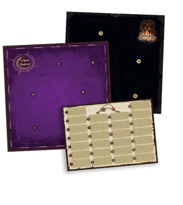 The three sticker sheets from Fateforge: The Chronicles of Kaan allow you to start the game all over again, without previously explored areas being revealed.