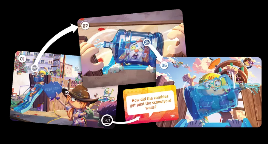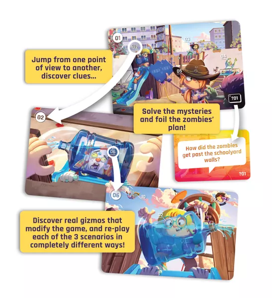 Lead the investigation in the universe of Zombie Kidz. Your mission: Foil the zombies' nefarious plans!