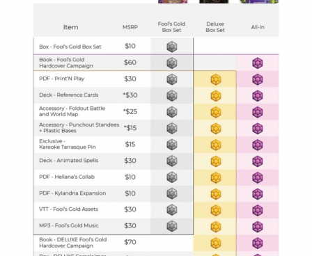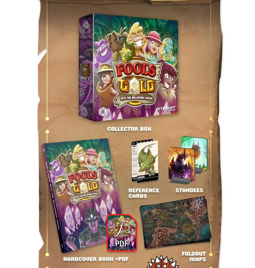 Fools Gold: Into the Bellowing Wilds is an exciting new 5e adventure that takes place in the world’s deadliest jungle where everything wants to kill you! Fun! Enhance your games with this jungle campaign setting, including a buttload of new content. We’ve also got brand new wilder magic & curse charts that will definitely excite GMs while the players pray to the dice gods.