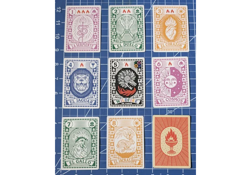 High cards win you tricks, but low cards earn you points. Wildfire cards fan the flames to make the trick en fuego. Strike a match by playing a same-valued card to blow out your opponents' chances. Turn up the heat with caliente cards that offer new challenges and mix up the gameplay.