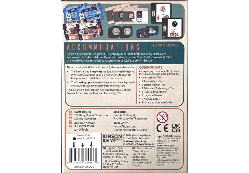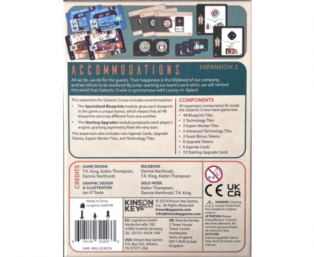 The Accommodations expansion for Galactic Cruise includes several modules, which may be played individually or in any combination with one another.