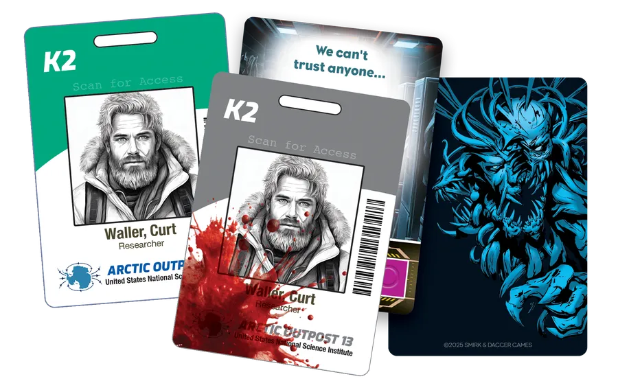This Game Is KILLER is a second in our line of hilariously deadly party games. This time you are trapped in an arctic outpost with a Horror that can mimic any life form. No one trusts anyone anymore. The object is simple: Stay away from everyone else and Stay Alive! Survive at any cost — and kill the Horror by figuring out who among you isn’t Human this round.