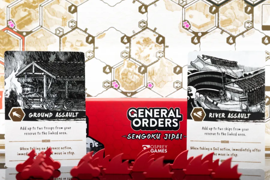 General Orders: Sengoku Jidai pits two competing daimyo against one another in a fight for control over crucial battlefields in 16th-century Japan. Deploy your commanders to seize powerful advantages, secure valuable supply lines, and capture well-defended forts — all while protecting your vulnerable HQ. This standalone game introduces new strategic waterways, ships, and devastating siege weaponry across two battle maps.