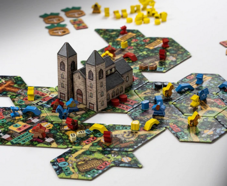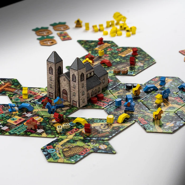 Build a village by working together and competing at the same time to turn your hamlet into a town! This tile shaped village building game you will ogranically create paths and buildings that will make your communities economy thrive and adapt to meet the needs of your soon to be town! What's the difference between a hamlet and a town you ask? A church of course!