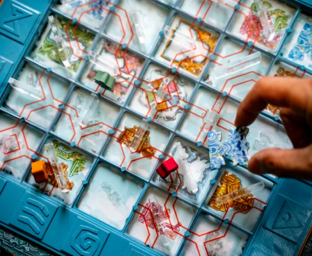Ice & Idols is a unique pick-up and deliver game for 2-4 adventurers with a twist—literally! Rotate the temple ruins and manipulate pathway tiles to your advantage, strategically positioning yourself to research the Idols and harness their hidden powers. Every move you make could lead to groundbreaking discoveries or unforeseen obstacles.