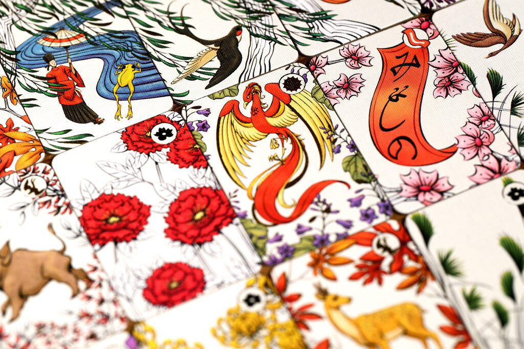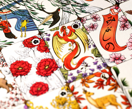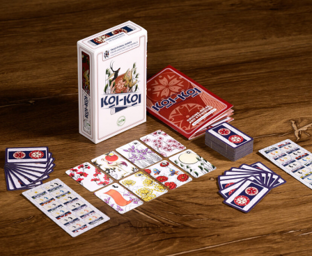 In Koi-Koi, each turn, capture cards from the center of the table using those in your hand to form the best combinations (called “Yaku”) and end the round with maximum points. At the end of the game, the player with the most points wins!