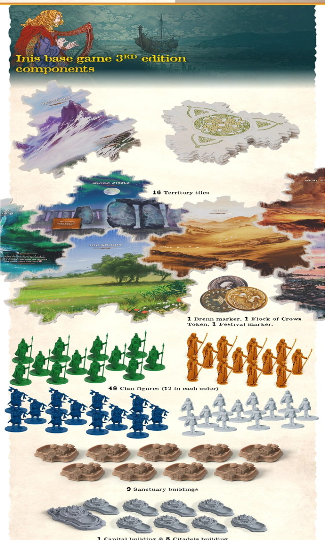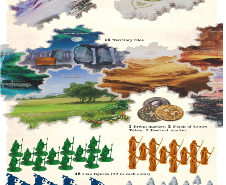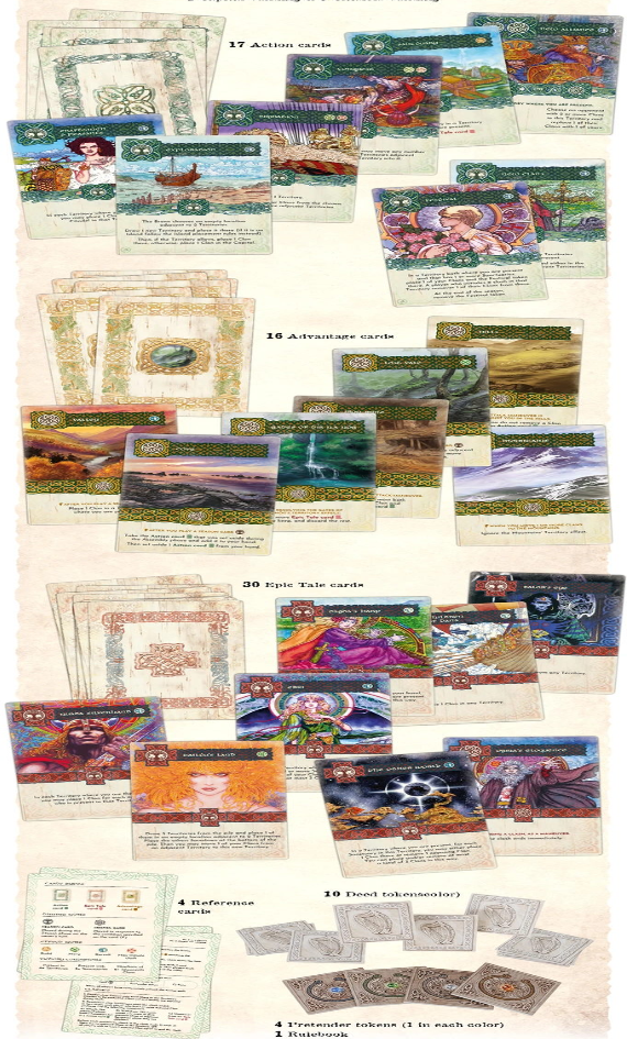 Over the course of the game, players also earn deeds, typically chanted by bards or engraved by master crafters, that reduce by one the magic total of six for any condition. While one victory condition is enough to claim the title of King, a game of experienced players usually has a tight balance of power, emphasizing the leadership of the capital of the island.