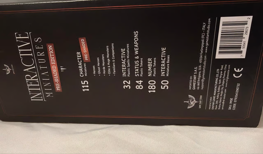 I only opened to verify contents were brand new un used. These are brand new un used Interactive Miniatures: Pre-Shaded Edition from Game Start Studio! This massive set is perfect for any Dungeons & Dragons (D&D), Pathfinder, or tabletop RPG game. The Pre-Shaded (or Sundrop) finish gives the miniatures an instant, high-contrast "pewter" look, ready for the table right out of the box—no painting required! Key Features: 115 Character Miniatures (Heroes, Monsters, Familiars) Pre-Shaded Finish 32 Interactive Plastic Spell Miniatures 84 Plastic Status & Weapon Tokens 50 Interactive Miniature Bases
