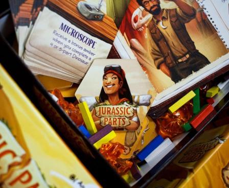 Jurassic Parts is a small box area enclosure and set collection tile game featuring dinosaur fossils! The game is designed by Kevin Lanzing (Flash Point Fire Rescue) and illustrated by Andrew Bosley (Everdell, Everdell: Pearlbrook, Tapestry, and The River).