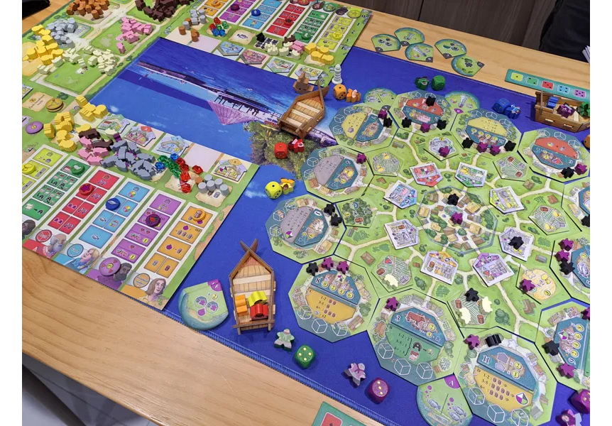 Once the dice are played (phase 1), then the harbours are activated (phase 2) and players gain actions and resources where their keyples are present.