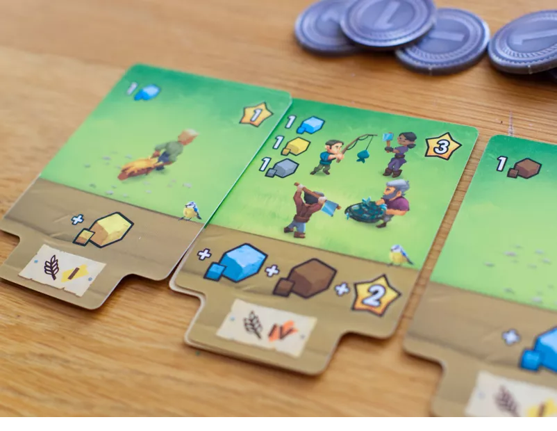 After each action taken by your worker, you can specialize it into either Gathering Resources or Building. Once done, it will grant you a bonus for this specific action for the rest of the game.