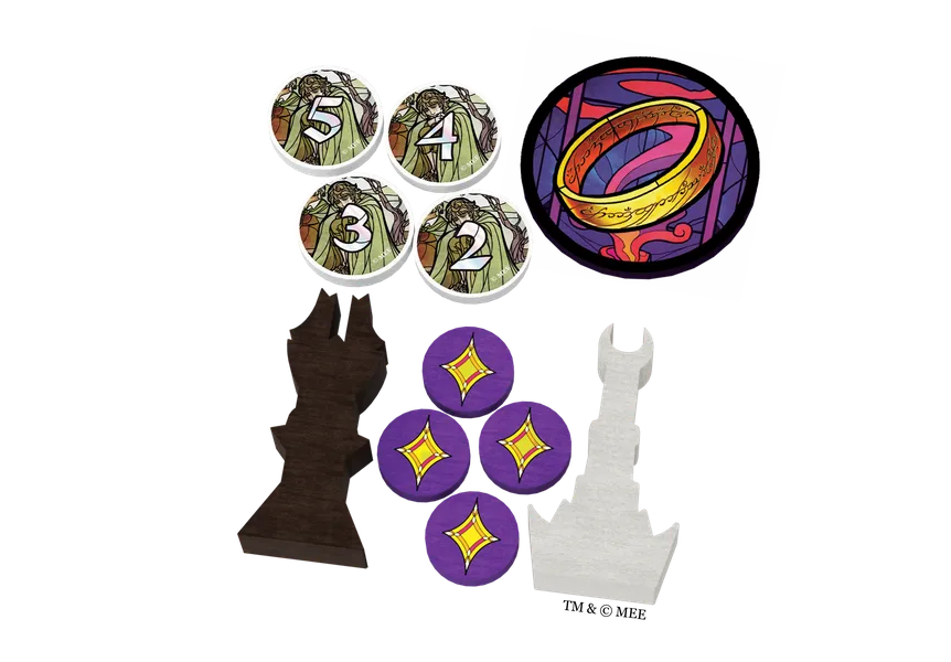 In each chapter, each player takes a different character role and each character has a condition that must be met in order to pass the chapter and advance in the story. As you advance through the chapters, new characters, items, and challenges are introduced to the game. The One Ring is the game's only trump card, but initially rings can't be led until someone plays one off-suit.
