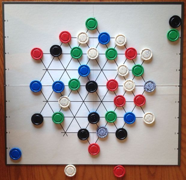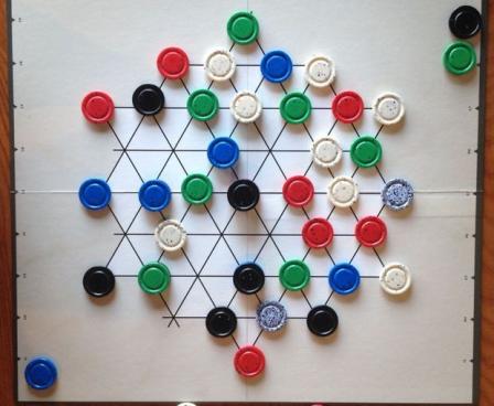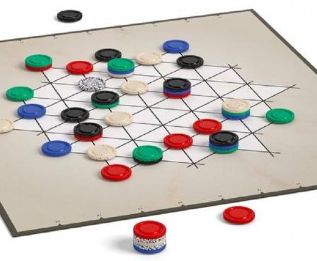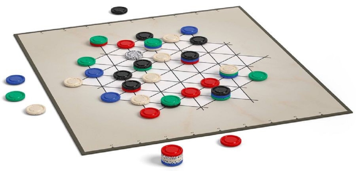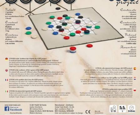The game is played with 48 pieces in six colors. At the start of play, all colors are neutral and do not belong to any player. During the course of the game, both players must choose two colors. The goal is to make piles of five pieces of different colors whose top color is their own. Whoever has clever tactics, plans for the future, and uses the possibility of multiple moves on stones of their own color will ultimately win with a majority of the 5-stacks.