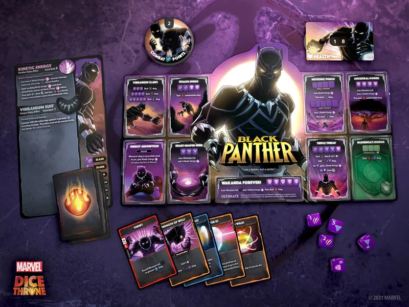 Marvel Dice Throne is a heart-pumping, fast-playing game of skilled card play and dice manipulation supporting multiple modes of play, including 1v1, 2v2, 3v3, 2v2v2, or free-for-all.