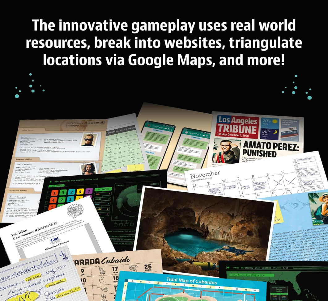 The game is closely intertwined with the real world, and players have to keep using traditional apps like Google Maps or Wikipedia to gather information. Email, detailed web pages, and cell phone calls are also part of the immersive gaming experience.