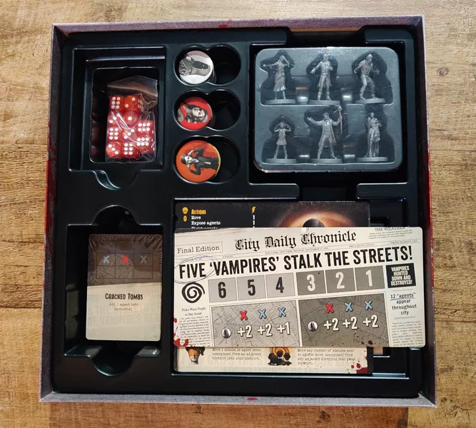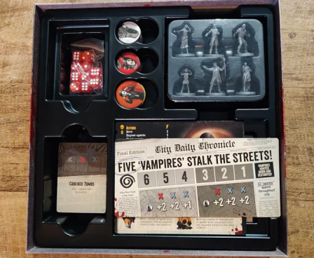 Play as a member of a Vampire family, just arrived after a long journey in a new, unfamiliar city. Will you survive and establish your rule? Who are the mysterious Agents trying to stop you? Masters of the Night is a fully cooperative board game for 1 to 5 players.