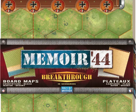 The Memoir ‘44 Breakthrough Expansion will take you deep into the battles of World War II with two, double-sided, 9-panel board maps covering all four Memoir ‘44 map environments - countryside, beach, winter and deserts. These oversize boards stretch the limit of current printing technology and are 13 x 17 hexes deep, opening up the Breakthrough format to new, more expansive scenarios.