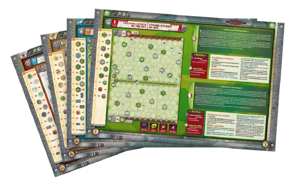 The Breakthrough Expansion includes 15, never-in-print-before scenarios, created by Jacques “jdRommel” David, and Memoir ‘44 author, Richard Borg. These scenarios cover the Western and Eastern Fronts, as well as the Mediterranean and Pacific Theaters and include classic battles such as: Operation Crusader; Operation Amherst; and two different renditions of Sword Beach - all designed for the 13 x 17 hex Breakthrough format.