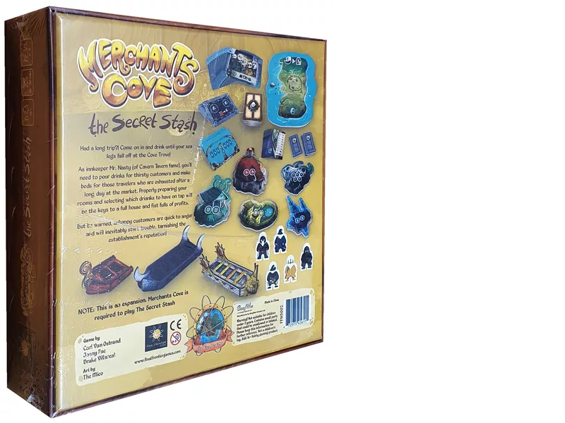 The Secret Stash is a treasure trove of goodies that can be added to Merchants Cove. It features a variety of modular expansions you can mix and match to create fresh experiences. It also introduces new content for playing solo: a book of 12 thematically-driven scenarios, and a deck of solo challenge cards.