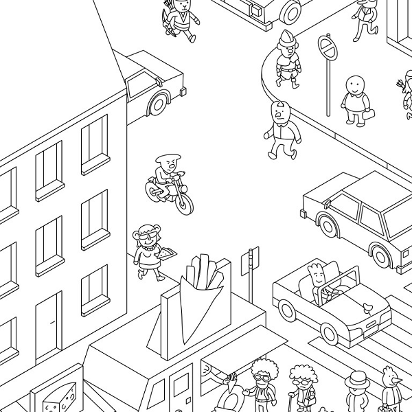 MicroMacro: Crime City includes 16 cases for you to solve. Each case includes a number of cards that ask you to find something on the map or uncover where someone has gone or otherwise reveal information relevant to a case. The city map serves as a map in time as well as space, so you'll typically find people in multiple locations throughout the streets and buildings, and you need to piece together what happened, whether by going through the case card by card or by reading only the starting card in the case and trying to figure out everything that happened for yourself. Will you be able to answer all questions about the case without fail?