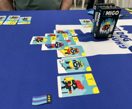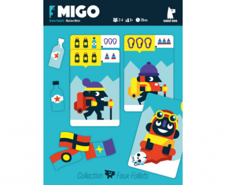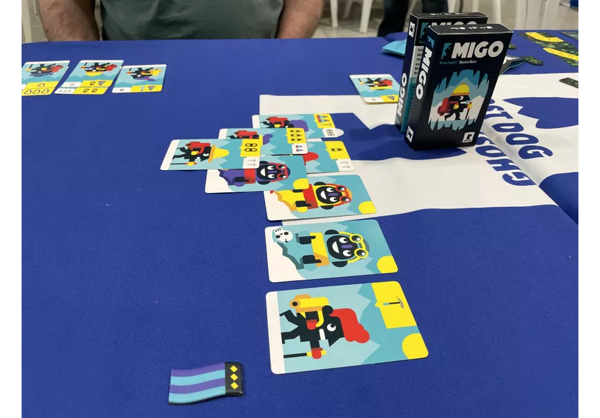 Each round in a game of Migo, the player with the most points wins a flag, and whoever collects two flags first wins.
